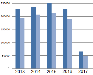 So here is a chart showing how many words I’ve written every year for the last five years.